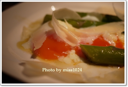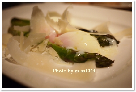 這前菜是當天的最愛,特大綠蘆筍與溫泉蛋佐帕馬森老起司。