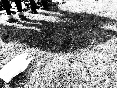 逛到北大校園,遇上青春女大生在草地上擺攤。