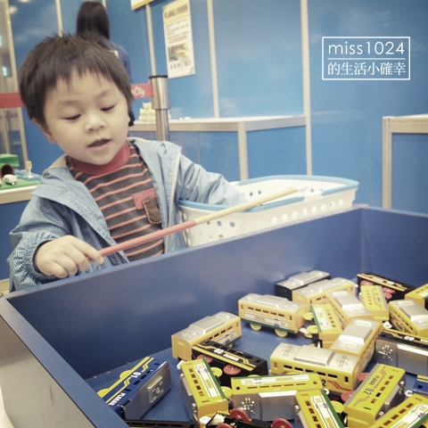 還玩了闖關遊戲,滿意的帶了火車回家。